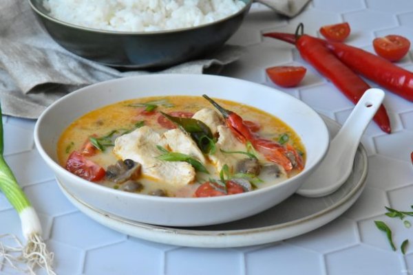 Готовим тайский суп Том Кха, на основе кокосового молока и курицы с ароматом азиатских специй. Подавайте Том Кха дополнив его отварным пресным рисом, который используется вместо хлеба.