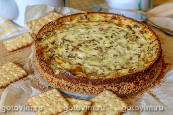 Для приготовления чизкейка вам потребуется: для основы: крекеры соленые — 160г орехи соленые (любые) — 160г масло сливочное — 70г для начинки: сыр творожный (типа филадельфии) — 400г яйцо — 2 шт. лисички — 400-500г тимьян — по вкусу лук репчатый — 1 шт. соль — по вкусу. Рецепт чизкейка: