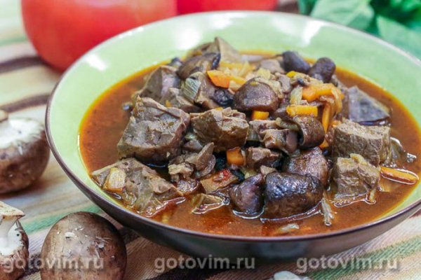 Гуляш из легкого с грибами