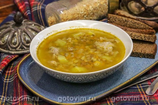 Мясной суп с горохом и чечевицей