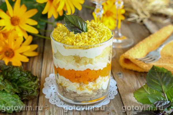 Салат «Мимоза» — старая, добрая классика советских застолий. Иногда хочется подать этот салат в не совсем обычном виде, а как-то более празднично и нарядно. Уложив «Мимозу» в порционные стаканчики или креманки, вы не только украсите свое застолье, а еще и будете уверены, что каждому гостю достанется его личная порция.