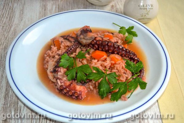 Для приготовления риса вам потребуется: осьминог — 1 шт. (около 1.5кг) лук репчатый — 1 шт. морковь — 2 шт. рис — 400г чеснок — 3 зубчика лавровый лист — 1 шт. оливковое масло для жарки. Рецепт риса: