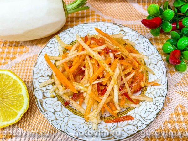 Салат из белой редьки с морковью, сладким перцем и ароматным маслом