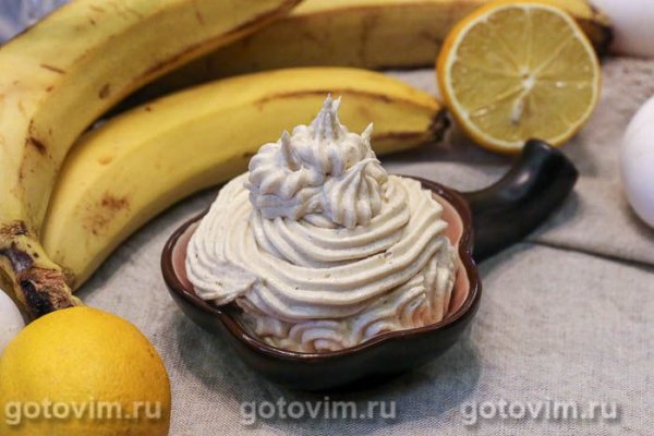В конечном счете у вас должен получиться воздушный банановый крем. У этого заварного крема будет чувствоваться приятный привкус бананов в карамели, чем он отличается от заварного бананового крема, приготовленного по этому рецепту. Крем подойдет для прослойки тортов, начинки пирожных или просто для десертов. Приятного аппетита!