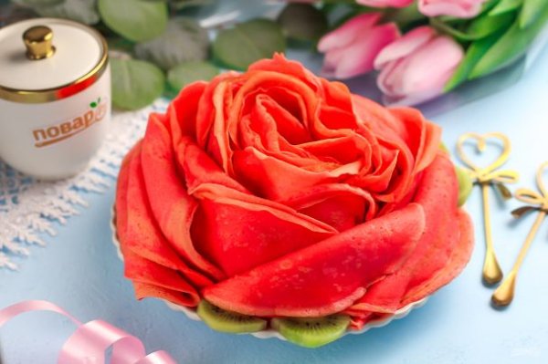 Вы удивитесь тому, насколько просто можно приготовить необычный праздничный десерт на своей кухне. Блинный торт "Роза" смотрится элегантно и привлекательно — его даже жаль разрезать. Такой десерт можно дарить на день Рождения, 8 марта или на помолвку. Готовьте с удовольствием!