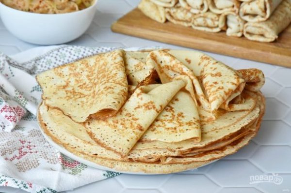 Из данного количества теста получается 17 блинчиков диаметром 24-26 см.